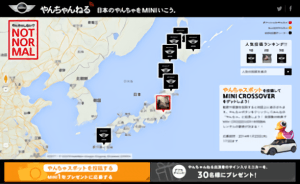 ビー・エム・ダブリュー株式会社 2013/11/13 http://yanchannel.jp/ MINIが主催する、日本中の「やんちゃ」を投稿するキャンペーンサイト。バックエンド開発全般、Google MAP連携部分の制作を担当しました。