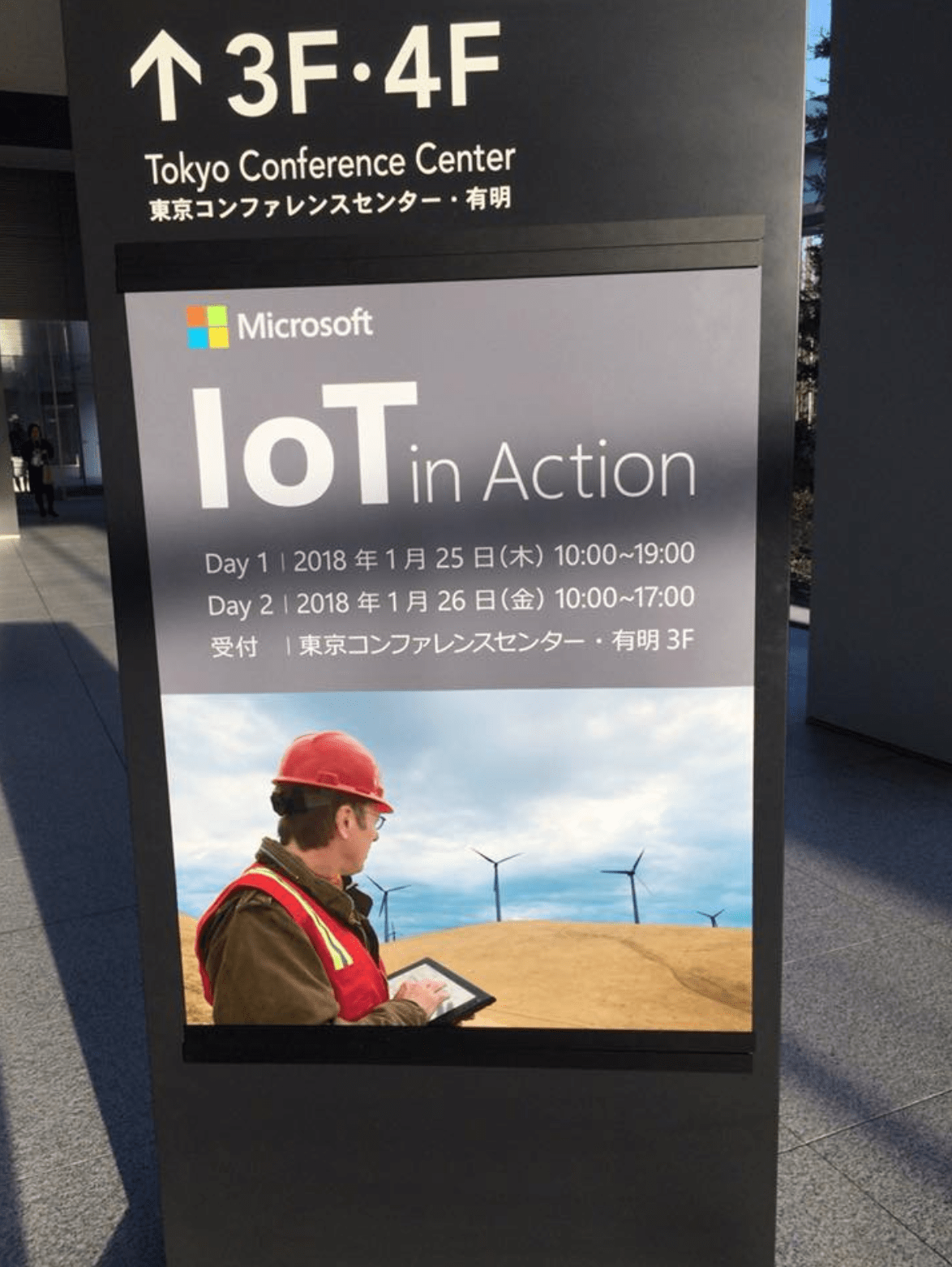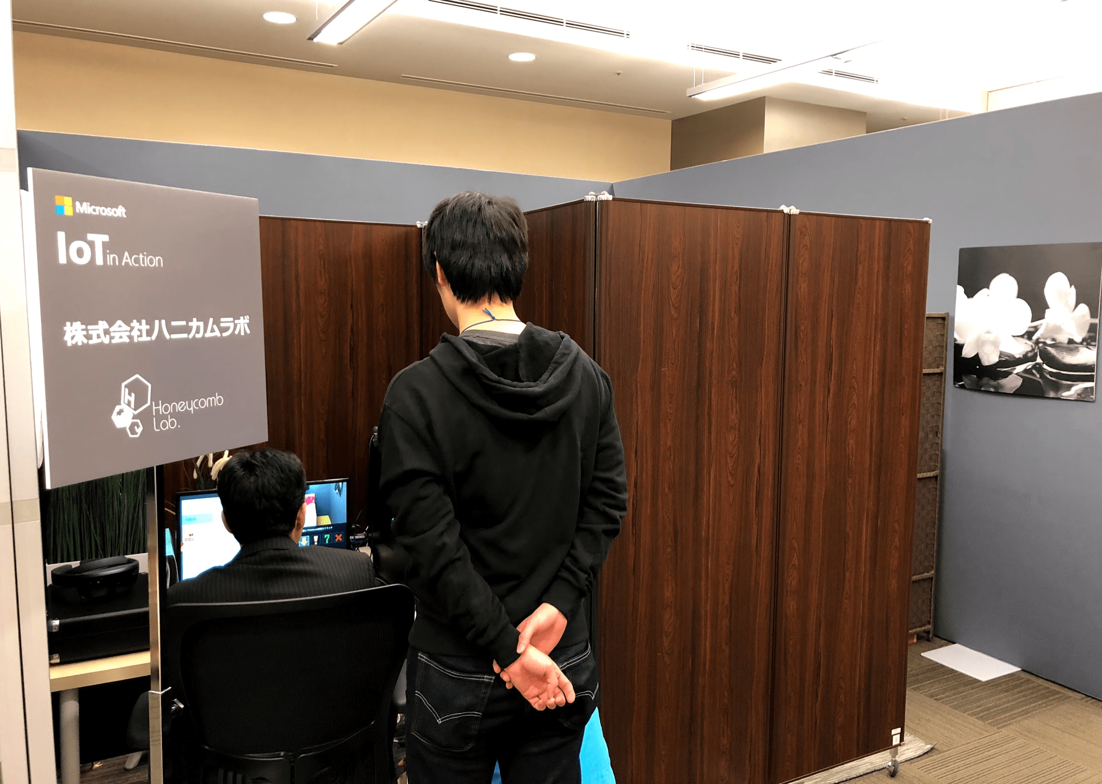 1/25, 26の二日間、Microsoft主催のイベント「IoT in Action」に体験ブースを出展しました。HoloLensをかぶった現場作業者に対し、遠隔でPCから映像やマップを見ながら色々な場所にホログラムオブジェクトを出現させて、指示やサポートをすることができるというソリューションのデモ体験です。